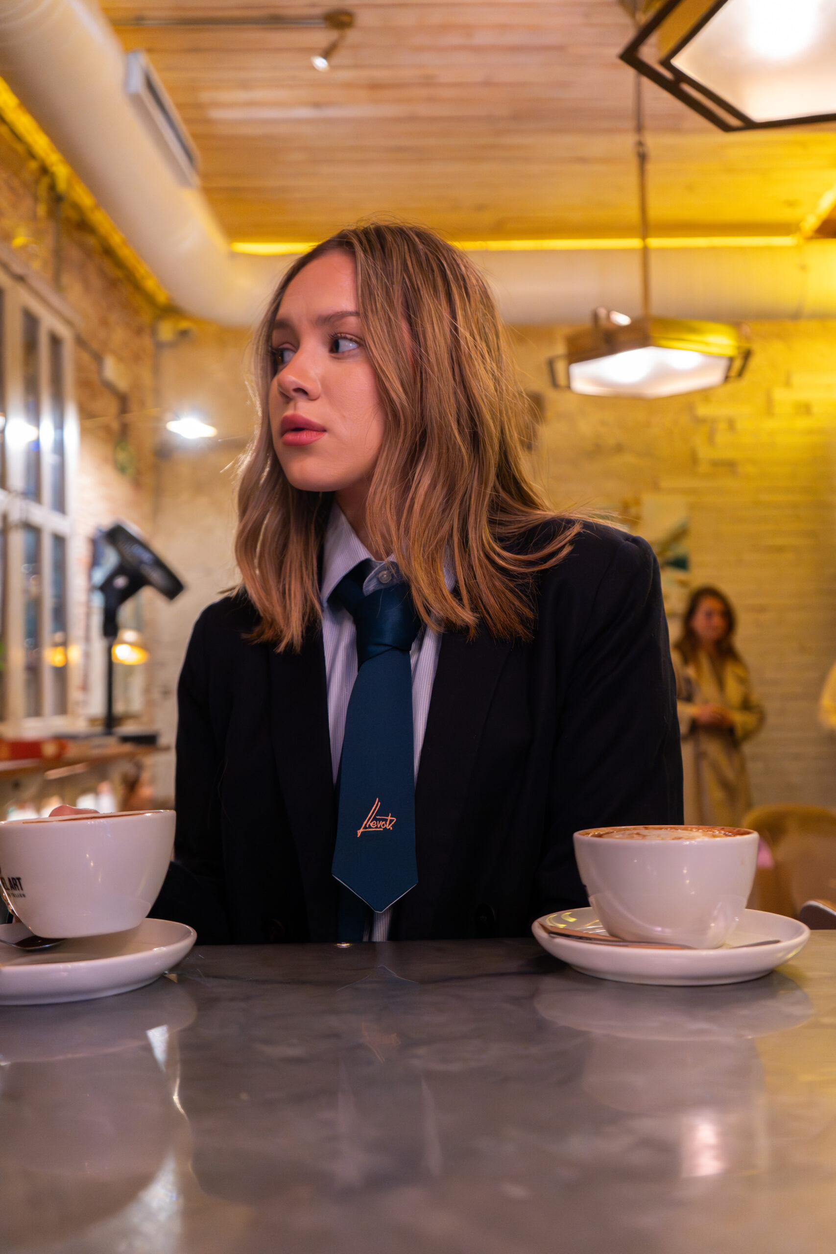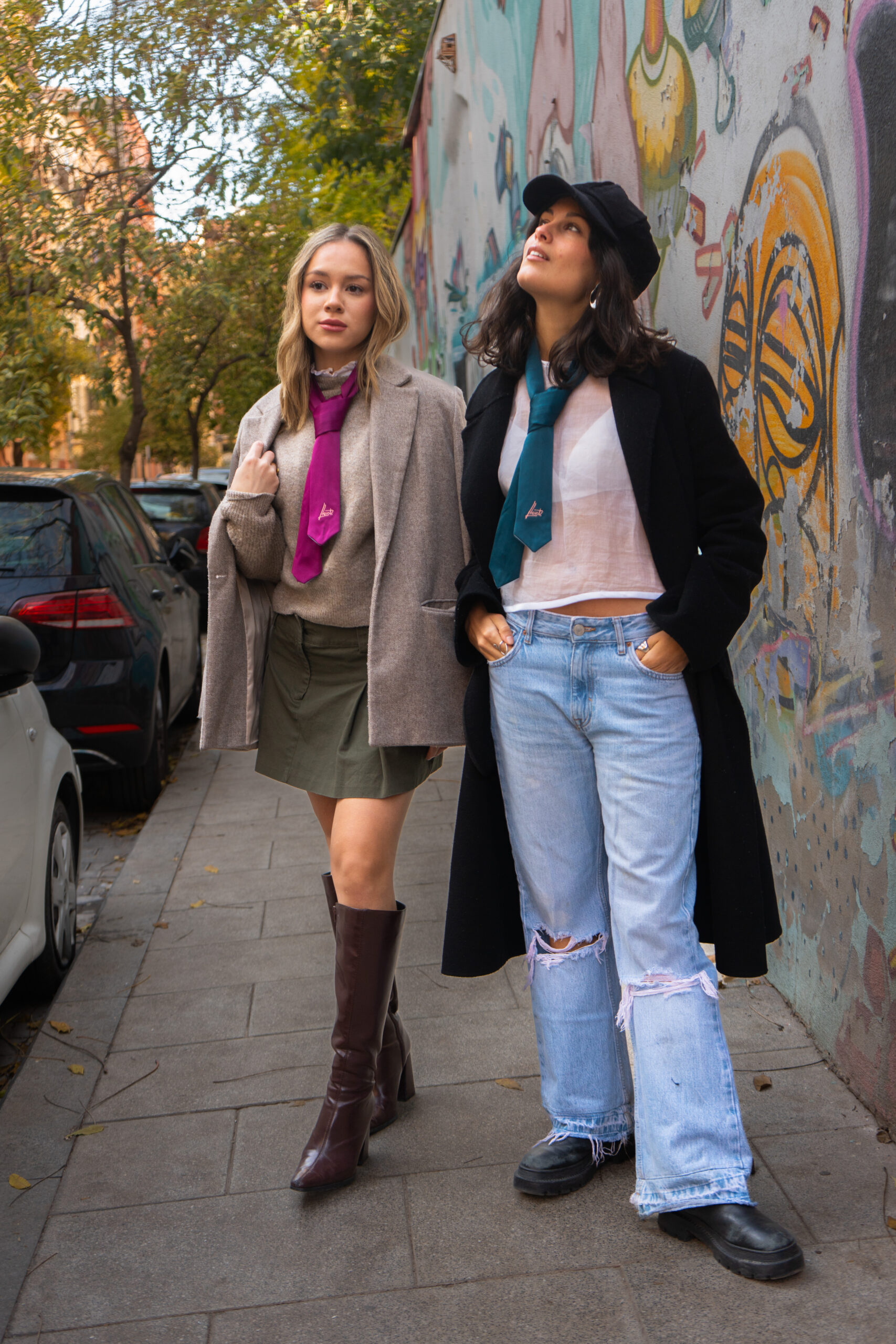 Corbata corta de diseño doble, pensada para mujer.